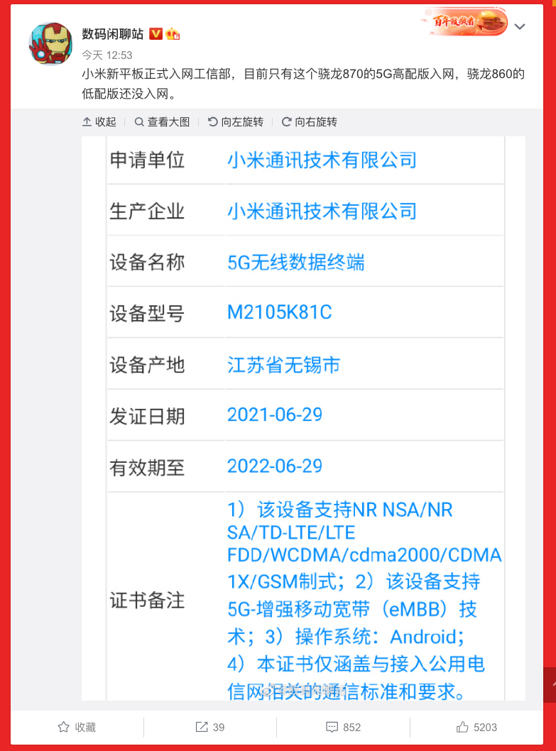 實錘驍龍870!小米平板5系列跑分曝光,性能出眾 - 每日頭條 from i2.kknews.cc Maybe you would like to learn more about one of these? We did not find results for: Check spelling or type a new query.